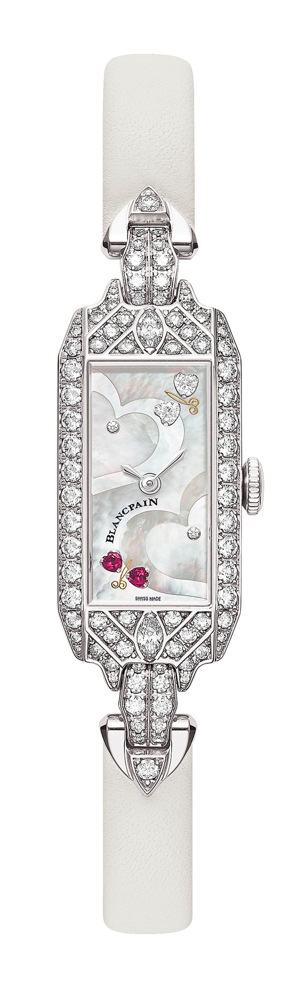 Blancpain sent us news of a 14-piece limited edition ladies watch for Valentine’s Day. That’s a little less than a month away, so you have plenty of time to save up for this €34,640 cocktail watch. The 18 carat white gold watch comes in at 35 x 16mm and has a mother of pearl dial set with diamonds and rubies. Staying true to its vintage cocktail watch theme, a hand-wound caliber 510 is found inside that has 52 hours of power reserve. The watch is adorned with roughly 1.5 carats of diamonds. Personally, I like the look of this one and with only 14 to be made, I am sure it will be gone quickly. Visit Blancpain for more details.