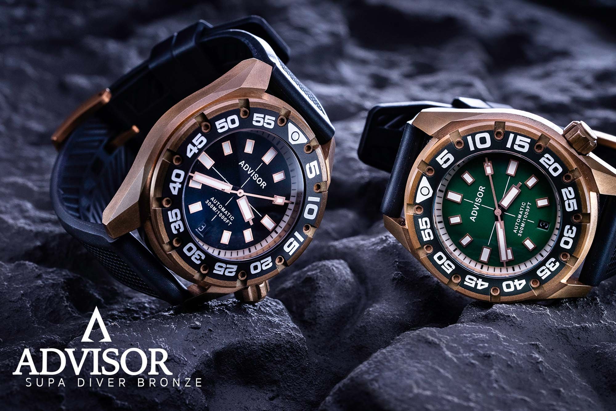 For those looking for something a little larger and a little more bronze, we received word of another micro brand that will launch its watch on Kickstarter beginning February 19th. Enter the Advisor Supa Diver Bronze. We have a 44mm bronze diver that’s good for 300 meters of water resistance and includes the Sellita SW200-1. The watch has a unique bezel with what looks like rivets between the five-minute markers. If you’re interested, head to their page and figure on $429 to land one on your wrist.