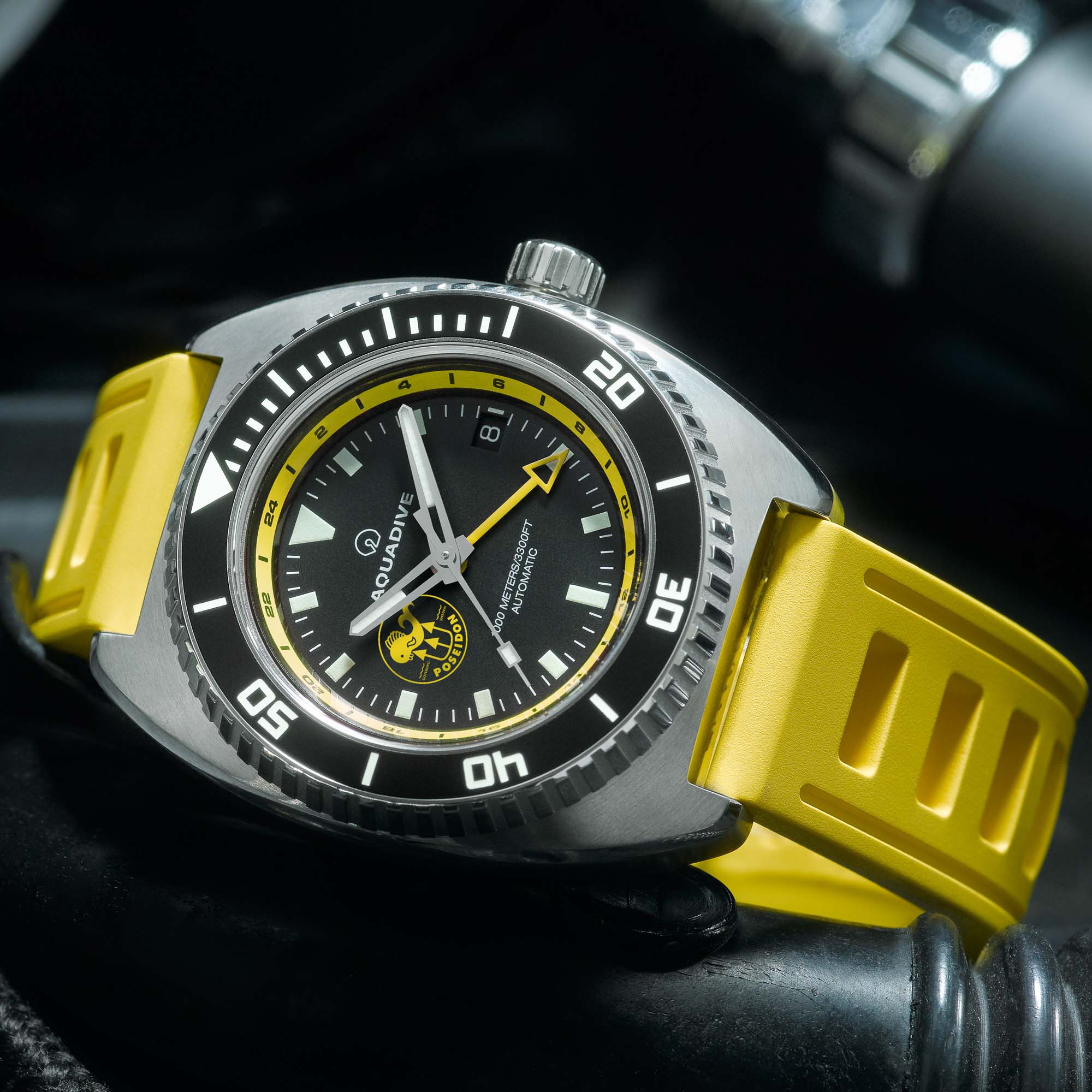 Aquadive has been going through a bit of a resurgence and we thought you’d want to see something new from them on this Week in Watches. They have a new site and now we have a new collaboration with Swedish dive gear company, Poseidon. You’ll recall Poseidon from a 2018 Doxa SUB limited edition that sold out quite quickly. This time, we have a Bathyscape-cased GMT diver sporting yellow accents. For those who pre-order one of the 300 pieces, both yellow and black ISOfrane straps will be included. At 43mm in diameter and with a lug to lug of 50mm, these Bathyscapes wear well due to short lugs. At 12.5mm, they’re not overly tall for a 1000 meter water resitant diver either. Inside, we have the ETA 2893-2 automatic with date and GMT function. All told, it’s a really sharp looking watch that should appeal to those who enjoy vintage looks combined with modern tech. The Aquadive Poseidon GMT will retail for $1,890, but can be pre-ordered here for the price of $1,395. Watches will begin shipping in November 2019.