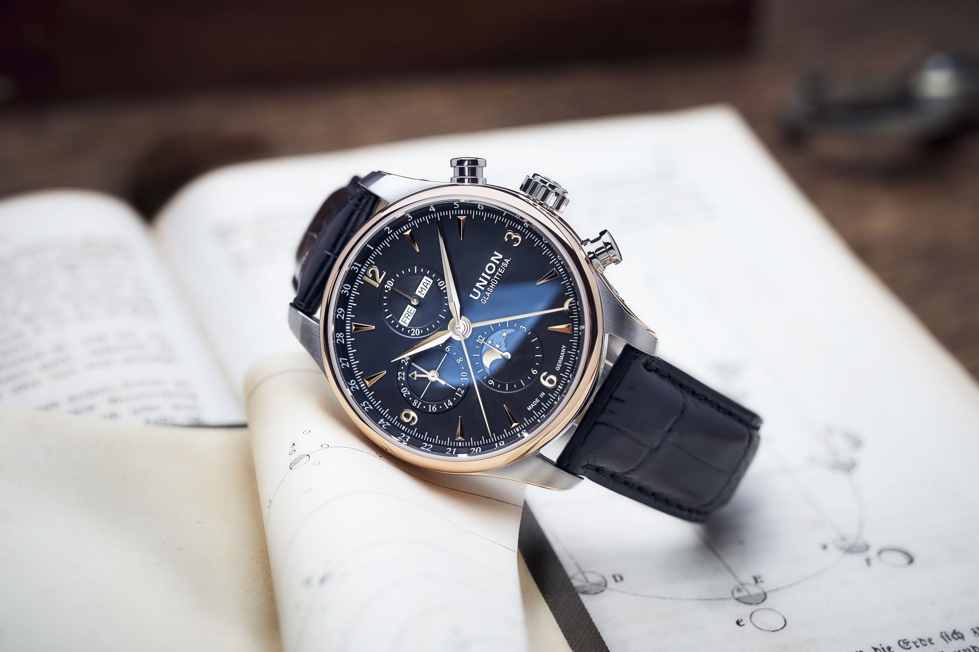 Next up on This Week in Watches is a new Union Glashütte Belisar Chronograph Moon Phase colorway. We spent time with a bi-color version of this watch with a white dial and now we have a version in black. Everything remains similar here including the 44mm case and use of the 7750-based UNG 25.01 automatic. The models come with rose gold colored hands and there is an all-stainless version as well as a bi-color variant. The stainless model comes on black rubber while the bi-color version on black calfskin. Pricing for the stainless is 2,980 Euros and the bi-color is 5,200. For more information, head to the official Union site.
